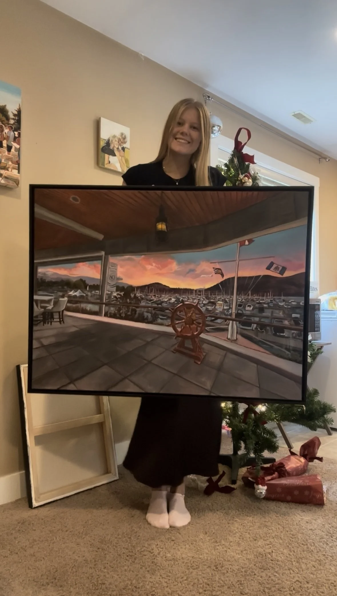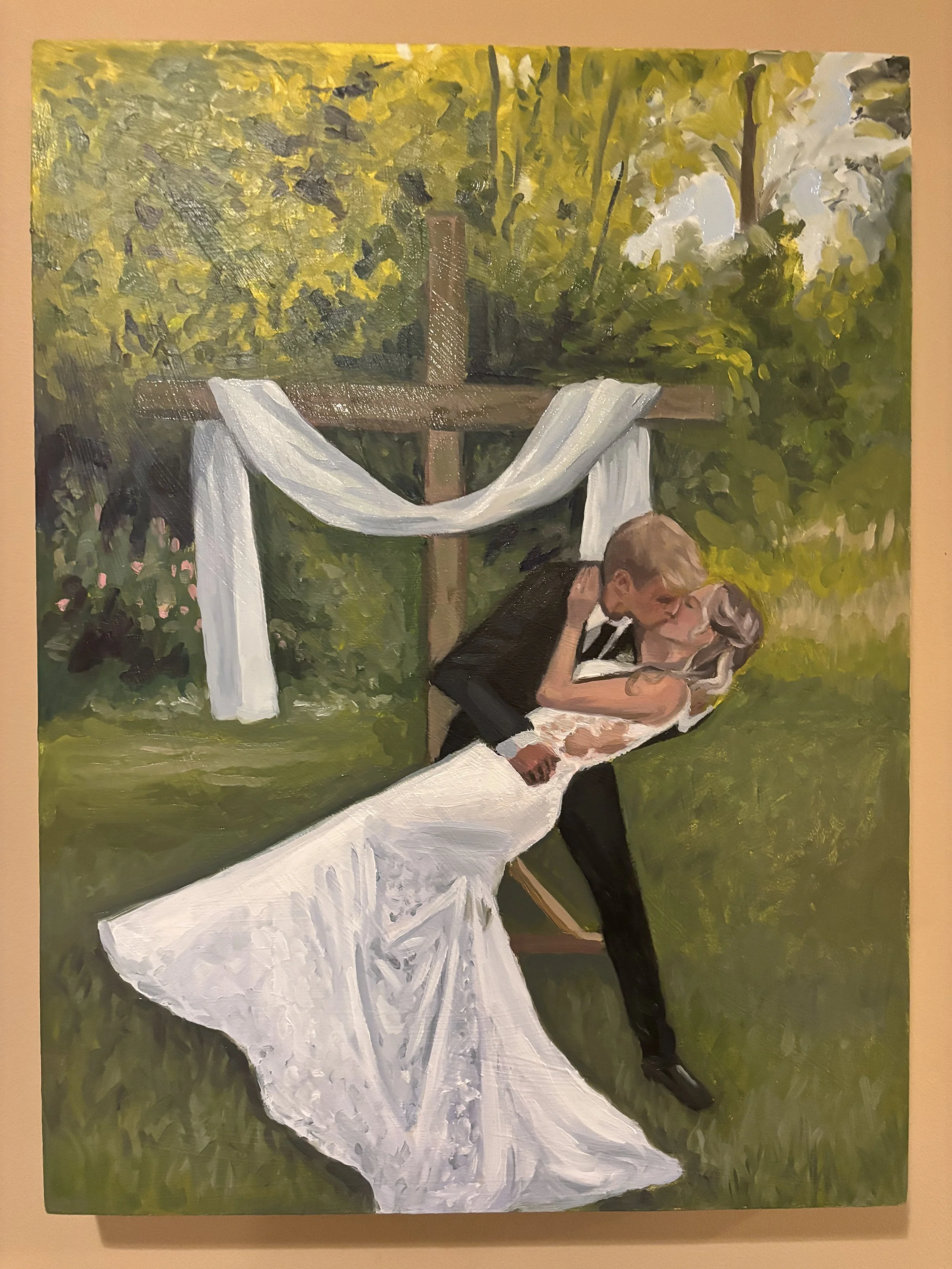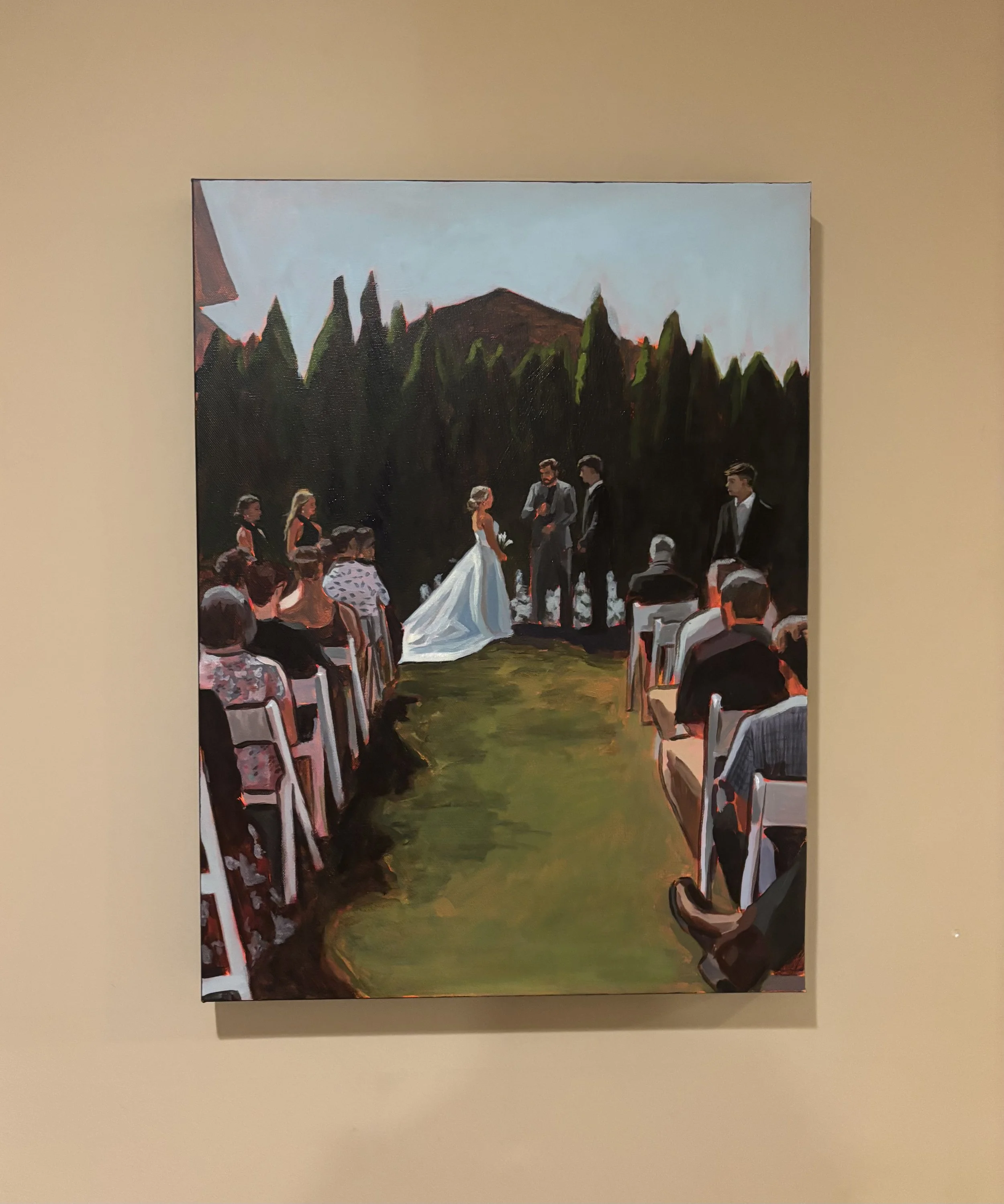 I come to the event and paint live while you party! Afterwards, I take the painting home and add final details and adjustments.